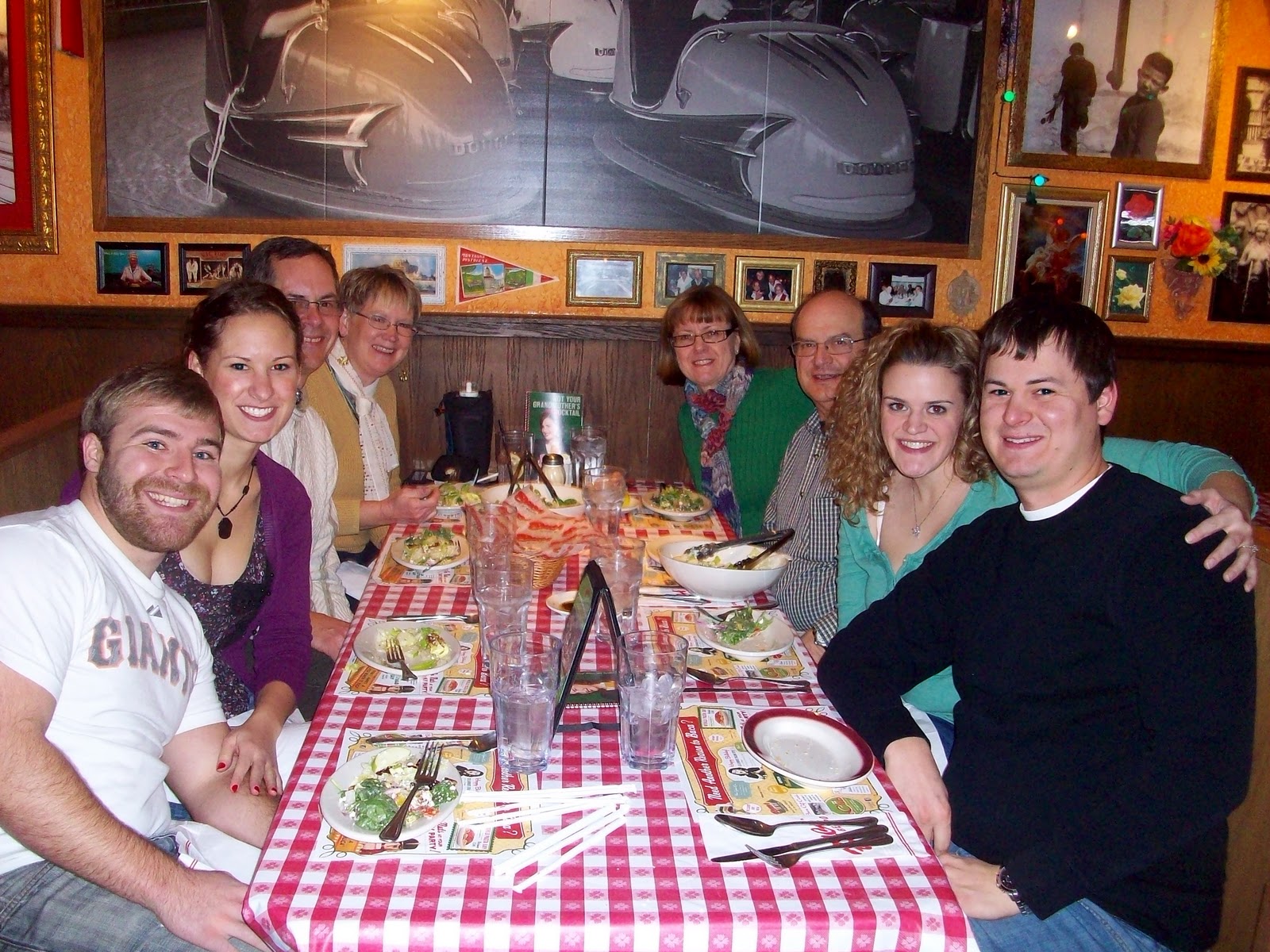 Just down the street, we met up with Dirk, Carol, Dylan, Nadine, and Ricky to celebrate Dustin's birthday dinner out. The food was SO YUMMY! And even though we were stuffed, Dustin got a birthday slice of cake that was quite tasty!